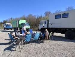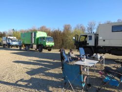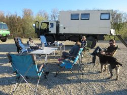 Inzwischen sind wir von einer wundervollen Tour mit unserem Dickerchen zurück gekehrt. Ziel war ein Treffen mit anderen Expeditionsmobilen auf der Basis von Leyland DAF T244 Allrad LKWs und ihren Menschen (und Hunden ?) im Off Road Park Langenaltheim, Bayern.