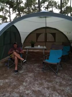 Aufgrund der Wetterlage und dem Zugang zum Meer, sind wir direkt zum neuen Standort gefahren. Jetzt stehen wir am Le Gurp und die erste Hürde der Standortwahl haben wir genommen. Pünktlich vor dem ersten Regen hat unser Shelter gestanden und nun gewittert es. Unser Junior hat schon die ersten Freunde gefunden und das ist gut so.