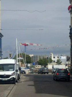 Auf dem Weg nach Cherbourg konnten wir viel Fahnen u.ä. bewundern. Meistens französische, aber auch die Fahnen der Alliierten Streitkräfte, welche an der Operation Overlord beteiligt waren, wurden gehisst.