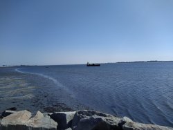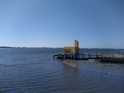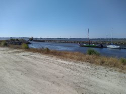 Jetzt stehen wir für die Nacht an einem kleinen Hafen mit Fischerkneipe.