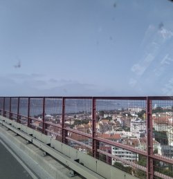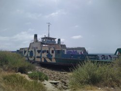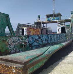 Kurze Etappe durch Lisboa nach Setubal. Jetzt stehen wir im Hafen an einer Bootrampe und es ist viel los, also viel zu sehen. Zwei Schiffe liegen hier abgewrackt zum rosten. Abenteuerspielplatz für Jung und Alt. ;)