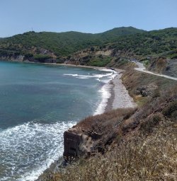 Ca. 100 km werden wir heute fahren und der ausgesuchte Platz ist in erhöhter Lage, oberhalb eines Sandstrandes. Hoffentlich sind wir nicht zu spät vor Ort.