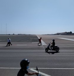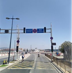 Auf Gibraltar sind wir leider einmal falsch abgebogen und das Navi hat direkt vor einer Unterführung gewarnt. Ich dachte direkt Mist und versuchte direkt ein Wendepunkt zu finden. Als der Warnblinker das Mänover ankündigen sollte wurden wir direkt von einem einheimischem Zweiradfahrer angesprochen ob er helfen könnte. Kurzer Dialog und wir fuhren hinterher. Das Problem schien gelöst, doch am nächsten Kreisverkehr hat es uns wieder erwischt. Nach ein paar Meter kannten wir uns wieder aus, ups da waren wir schon. Nach ca. einem Liter weniger Körperflüssigkeiten waren wir wieder auf der gesuchten Europastraße. Auf dem Rückweg ging es auf der anderen Seite durch einen Tunnel, innen 4 m und aussen 3,4 m. Wir haben 3,6 m und somit schön in der Mitte gefahren, natürlich ein Spaß zum Abschluss. Wieder über die Landebahn des Flughafen Gibraltar zur Grenzkontrolle. Natürlich wollte der spanische Zoll hinten reinsehen.
