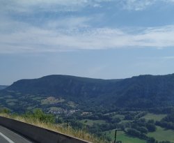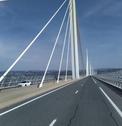 Zwischendurch hat es stark geregnet und zur Zeit grummelt es, vielleicht regenet es hier nachher auch noch ein bisschen. Die heutige Fahrt war eine Berg und Talfahrt. Highlight war eine sehr lange Brücke über ein sehr tiefes Tal. Der Spass hat uns 30€ Maut gekostet. Das Erlebnis und die kürzere Strecke haben die Maut gerechtfertigt.