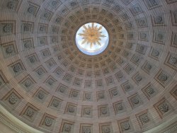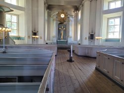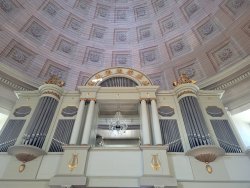 Das Zentrum von Karlskrona stellt das Rathaus, die Friedrichskirche und die Dreifaltigkeitskirche dar. Die letztgenannte fällt mit Ihrer Sitzordnung, wie im Plenarsaal, aus der Reihe und erinnert durch ihre Kuppel an das Pantheon in Rom.