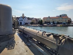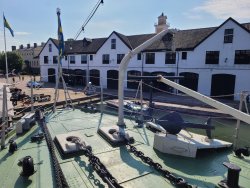 Heute sind wir nach Karlskrona gefahren, um das dortige Marinemuseum zu besichtigen. Zwei U-Boote, ein Segelschulschiff und zwei Kriegsschiffe konnten besichtigt werden. Wir waren sehr überrascht mehr zu sehen als im Museum in Cherbourg-en-Cotentin in Frankreich. Die Einstellung der Schweden zum kalten Krieg war uns so nicht bewusst. Die Straßen der Orte sind vornehmlich mit den Ostsee Anreinerstaaten geschmückt, die Staaten der ehemalige Sowjetunion sind wohl akzeptiert und schmücken ebenfalls die Straßen.