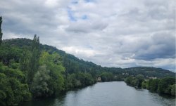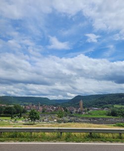 Über 500 km haben wir uns heute in Richtung Süden bewegt. Die Fahrt ging durch Wiesen, Felder, kleinere Orte und in den Höhen durch Weinberge. Auf den National-- und Durchgangsstrassen ging es gut voran. Erst als wir ein kurzes Stück durch Lyon die Autobahn wählten, standen wir prompt im Stau. Ein LKW liegenbleiber auf der mittleren Spur hat uns die Reise versüßt. Heute war es oft stark bewölkt, dementsprechend war es eine angenehme und nicht so heiße Fahrt.