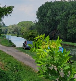 Das Fahrzeug steht teilweise im Schatten, das ist heute sehr angenehm, da es auch nicht ganz so heiß ist.