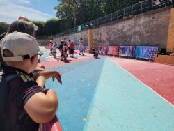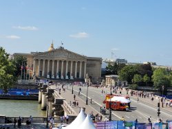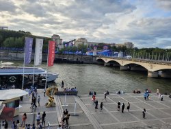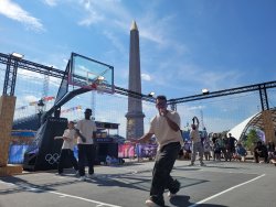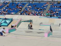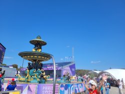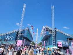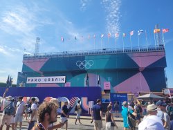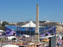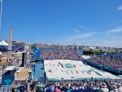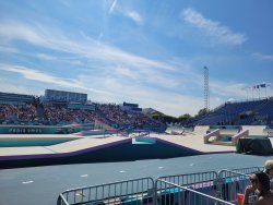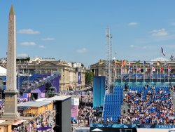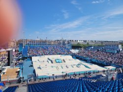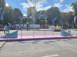 Wir hatten Karten für die urbanen Sportarten am Place de la Concorde. Dort wurden für die Sportarten vier Arenen aufgebaut. Als Rahmenprogramm stehen Mitmachstationen bereit und die Sportarten werden als Show präsentiert.