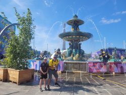 Zur Kühlung stehen viele Wassernebelstationen bereit, eine sehr gute Idee.
