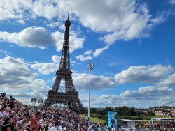 Erster Tag bei den Olympischen Spielen. Die Anreise zu den Spielstätten ist aus Melun optimal, der Zug fährt ohne Zwischenstop bis zum Bahnhof Gare de Lyon. Von dort geht es gut mit der Metro zum Zielort. Die Organisation ist beeindruckend gut, man wird optimal mit diversen Hinweisschildern zum Ziel geführt.