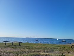 Eigentlich hatten wir eine kleine Wanderung geplant … aber dann war da dieses Wasser. Nicht kalt. Einladend. Verlockend. Nur ein paar Minuten später lagen die Wanderschuhe in der Ecke, und wir waren im Haff – Schwimmen statt Spazierengehen 🏊♂️. Eine willkommene Erfrischung und das perfekte Beispiel dafür, wie spontan sich Pläne auf Reisen ändern können.