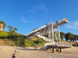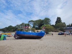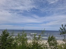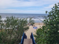 In Dziwnów legten wir eine kleine Pause ein – ein kurzer Besuch im Supermarkt Biedronka (auf Deutsch: „Marienkäfer“) war natürlich Pflicht. Danach ging es für einen kurzen Abstecher an die Ostsee, bevor wir weiter Richtung Rewal fuhren.