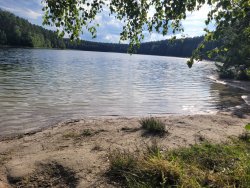 An einem besonders schönen See fanden wir schließlich ein Plätzchen, das uns sofort zusagte. Doch die Ruhe währte nicht lange: Beim kurzen Kontrollgang ums Fahrzeug entdeckte ich einen Riss im Reifenprofil. Kein Luftverlust – zumindest auf den ersten Blick – aber der Riss war tief, und ein Metallstück hatte sich in den Reifen geschnitten.