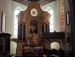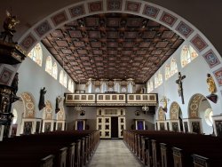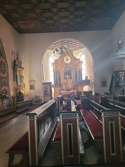 Während unser Fahrzeug in der Werkstatt war, nutzten wir die Gelegenheit, die Umgebung zu erkunden – und wurden positiv überrascht. Unser Weg führte uns zur wunderschönen katholischen Kirche Kościół Rzymskokatolicki pw. Św. Jakuba Apostoła, einem beeindruckenden Ort der Ruhe und Geschichte.