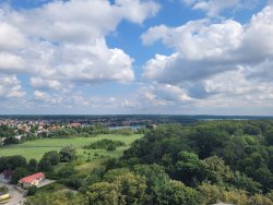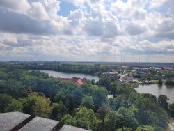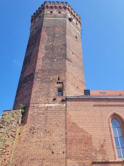 Im Anschluss besuchten wir das Regionalmuseum in der Burg Schlochau. Die imposante Anlage ist die zweitgrößte Ordensburg des Deutschen Ordens im heutigen Polen. Auch wenn heute nur noch der Turm und Teile der Grundmauern erhalten sind, ist die Atmosphäre des Ortes spürbar. Eine angebaute Kirche wurde mittlerweile in eine moderne Ausstellungs- und Veranstaltungsfläche umgewandelt – ein spannender Kontrast zwischen Geschichte und Gegenwart.