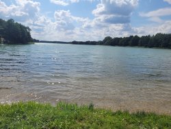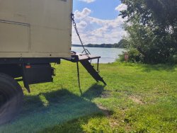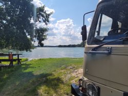 Während der Reparatur unseres Reifens und einem Abstecher zur Kreuzritterburg haben wir heute einen echten Geheimtipp entdeckt: ein wunderschöner Platz direkt an einem großen See.