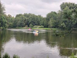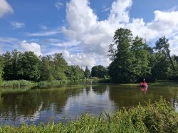 Direkt gegenüber liegt ein kleiner See, der als Naherholungsgebiet dient. Es gibt dort einen Tretbootverleih, einen Spielplatz, einen Nina- und Kletterparcours sowie mehrere Grillstellen – ideal für eine entspannte Auszeit am Wasser.