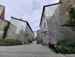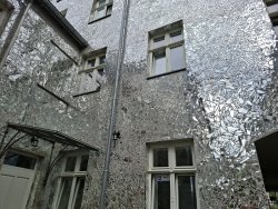 Die Umsetzung war aufwendig: Stück für Stück wurden Wände und Innenhof eines Mietshauses in der Piotrkowska-Straße 3 mit zerschnittenen Spiegelteilen beklebt. Die ehemals dunkle Hofecke wurde so in ein Meer aus Lichtreflexionen verwandelt. Die zahllosen Spiegelfragmente fangen das Licht ein, reflektieren es in alle Richtungen – und lassen den Ort lebendig flackern.